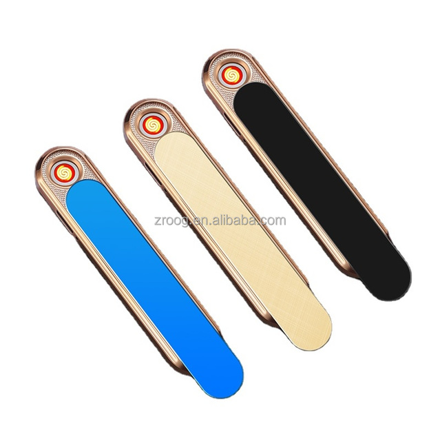ไฟแช็คบุหรี่ไฟฟ้าขนาดเล็กแบบพกพาชาร์จไฟได้บางกันลมไฟแช็คโลหะไร้เปลวไฟสำหรับใช้ในชีวิตประจำวันหรือแจกฟรี